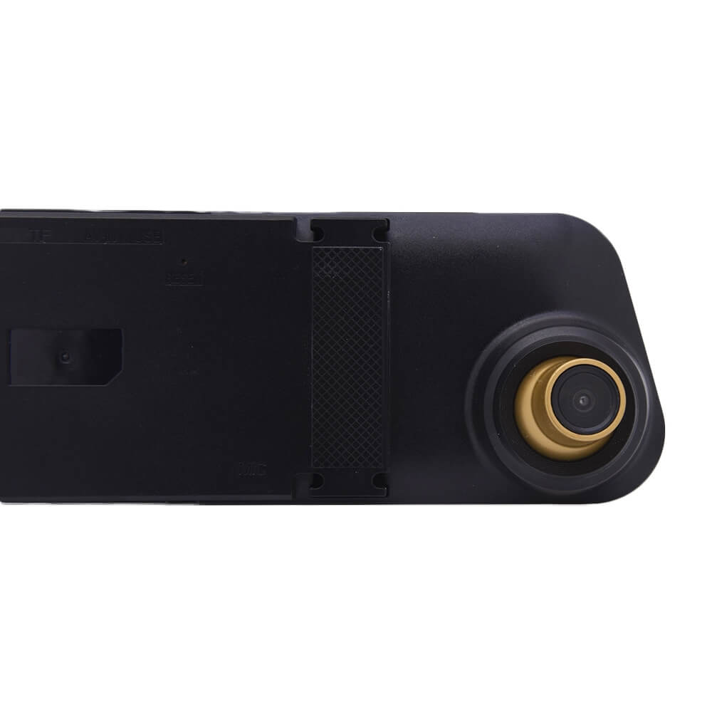 Автомобильный видеорегистратор с выносной камерой, которая позволяет снимать видео с разрешением 720Р или 1080Р. Для съемки в условиях низкой освещенности устройство оснащено четырьмя светодиодами подсветки. Угол обзора камеры – 170 градусов. В зеркало заднего вида встроен дисплей диагональю 4,3 дюйма с разрешением 640x480 точек. Видеорегистратор поддерживает установку карты памяти до 32 Гб. Питается прибор от бортовой сети автомобиля.