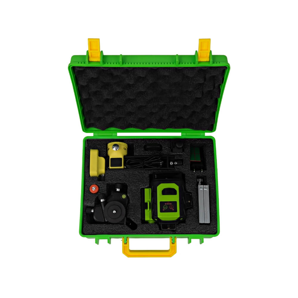 Оснащен системой самовыравнивания, способен воспроизводить сразу 16 линий, которые отражают четыре замкнутые плоскости с обзором в 360 градусов. Благодаря зеленому цвету лучей, они хорошо просматриваются при любом уровне освещения.