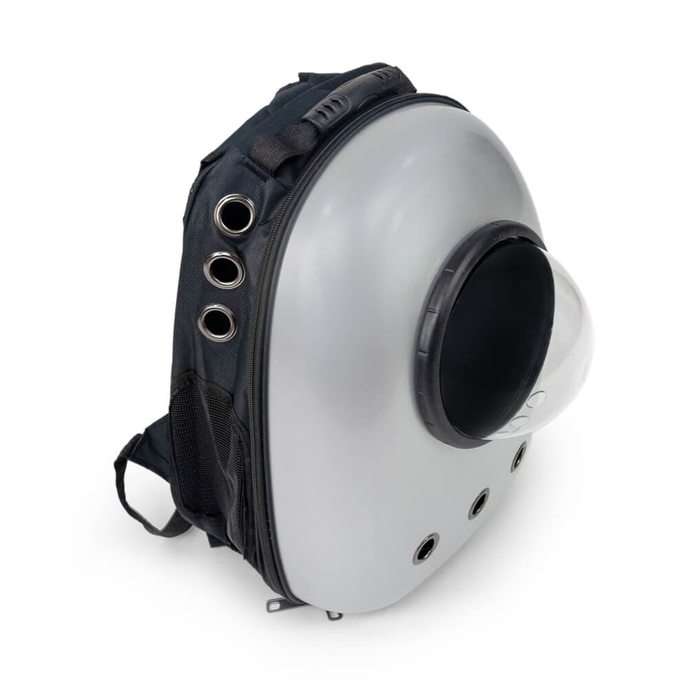 Рюкзак из прочного поликарбоната для переноски кошек и небольших собак. Круговой замок молния обеспечивает полное раскрытие рюкзака. На боковых поверхностях имеются сетчатые окошки для вентиляции. Сферический иллюминатор на крышке рюкзака обеспечивает достаточную освещенность и позволяет визуально контролировать состояние животного.