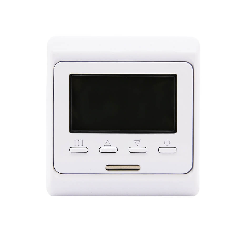 Настенный врезной терморегулятор применяется в системах теплого пола. Прибор оснащен встроенным терморезистором для измерения температуры в месте установки и дополнительным датчиком температуры, который монтируется непосредственно в пол на расстоянии не более трех метров от терморегулятора. Диапазон измерения и регулирования температуры – от 5 до 90 градусов с шагом от 0.5 до 10 градусов. Реле терморегулятора рассчитано на коммутацию нагрузки до 3520 Вт.